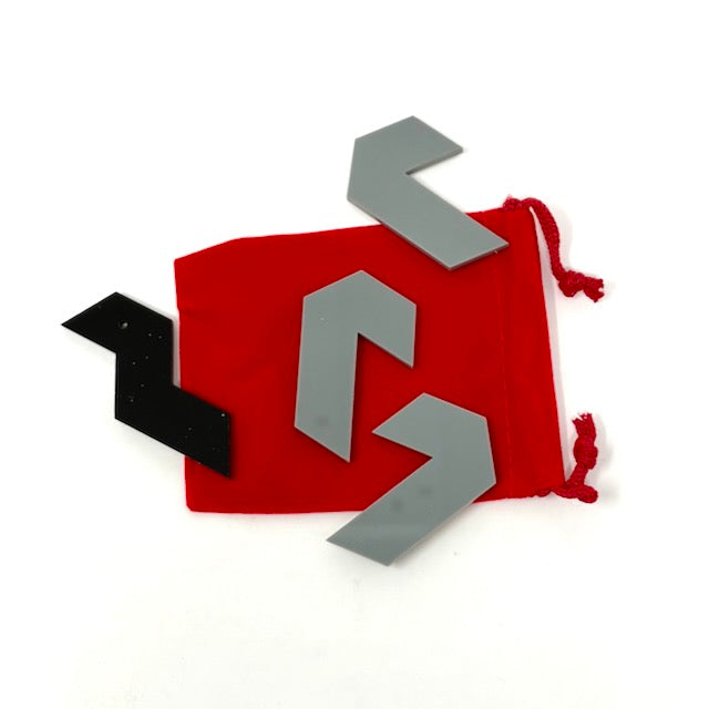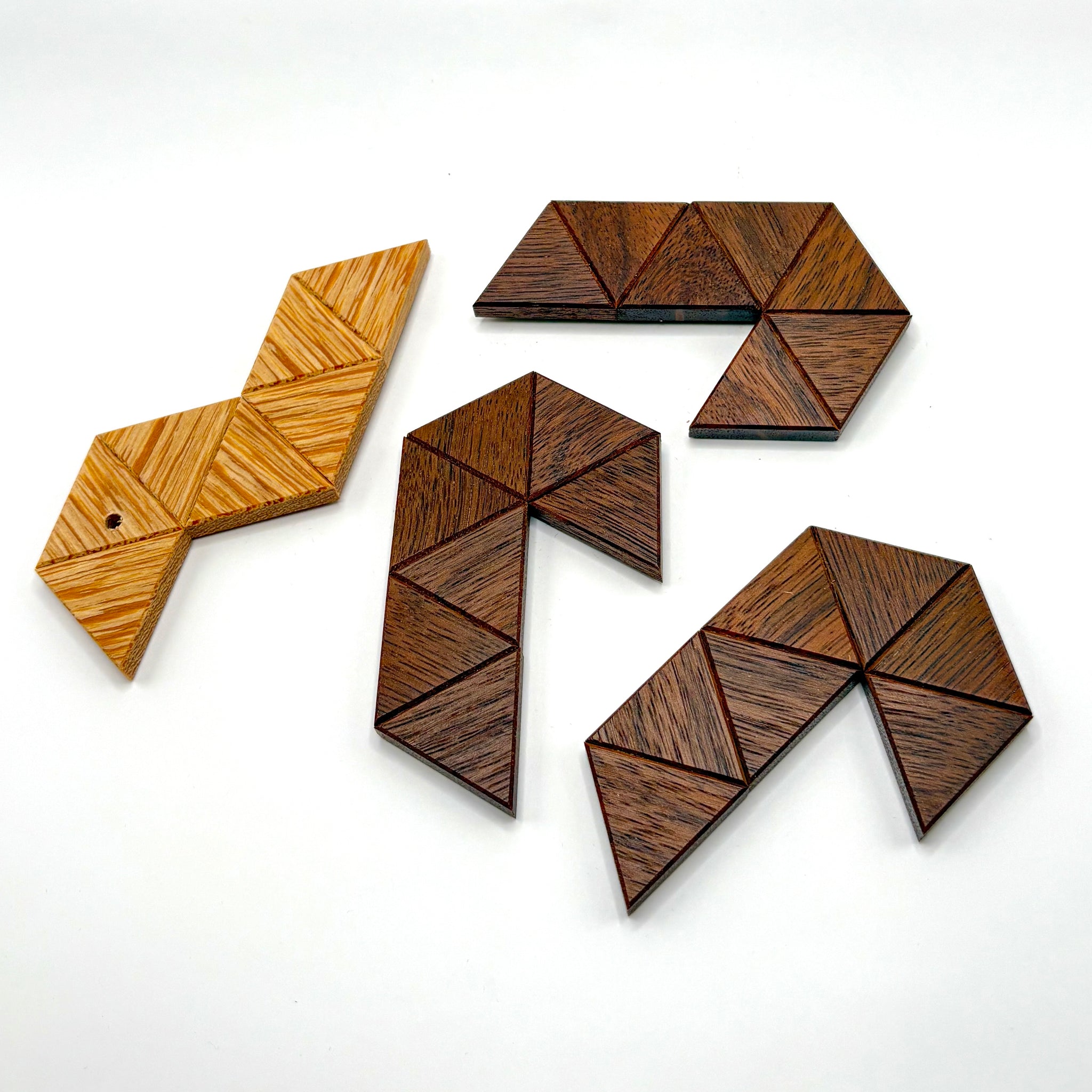 George is a master of simple 2D puzzle designs. With the Eel and the 3 fish hooks make a symmetric shape! You may flip the pieces over but they must not overlap. Have fun with this one, I did!