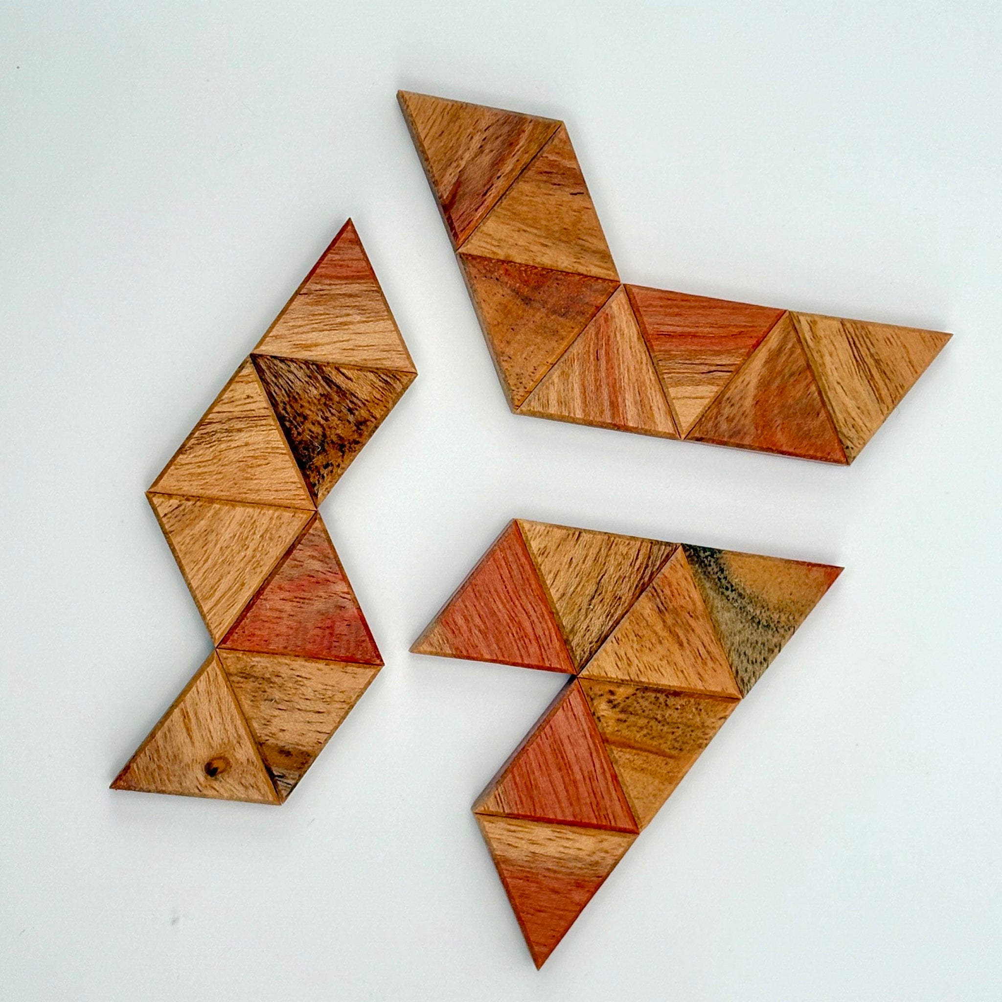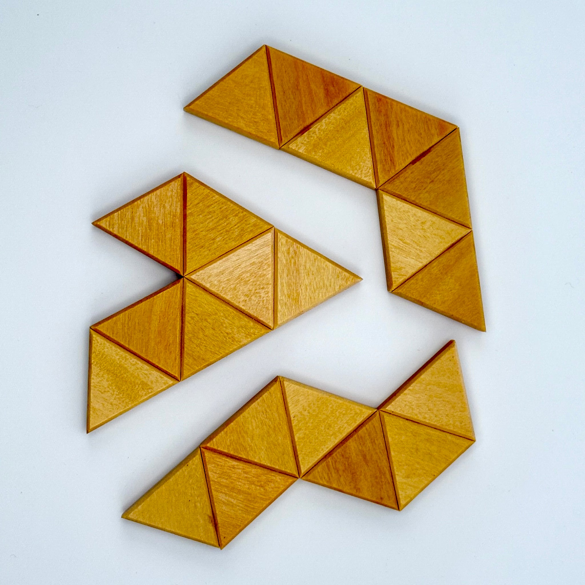Another cool design by George Sicherman. Here the object is to make a four, six and seven sided polygon with the three pieces. Another fun carry around to torture your friends puzzle.