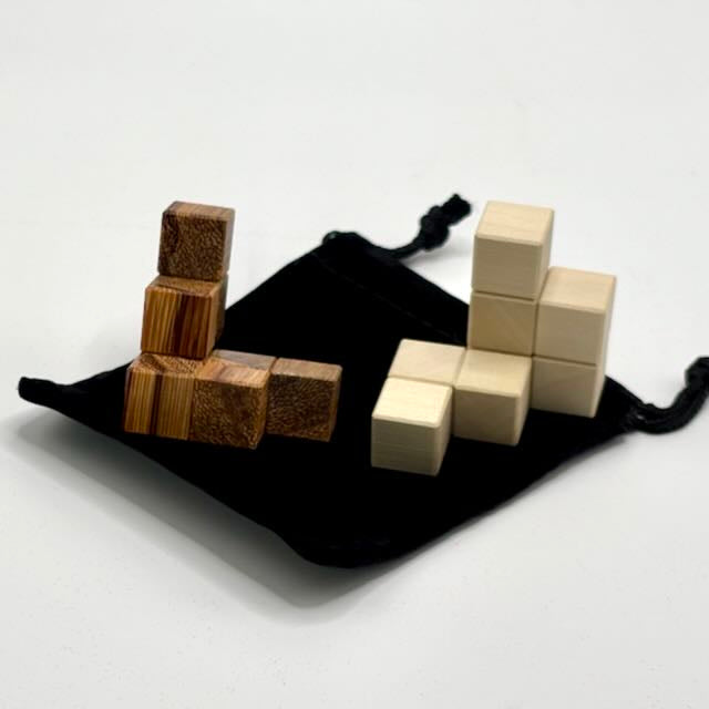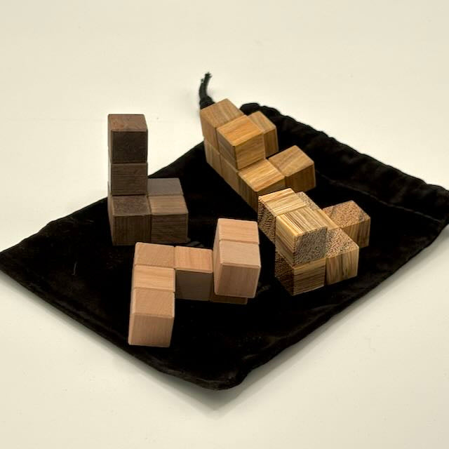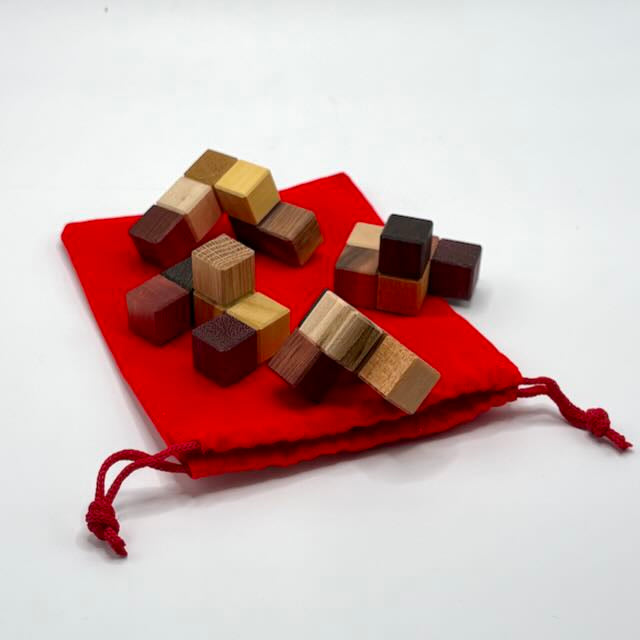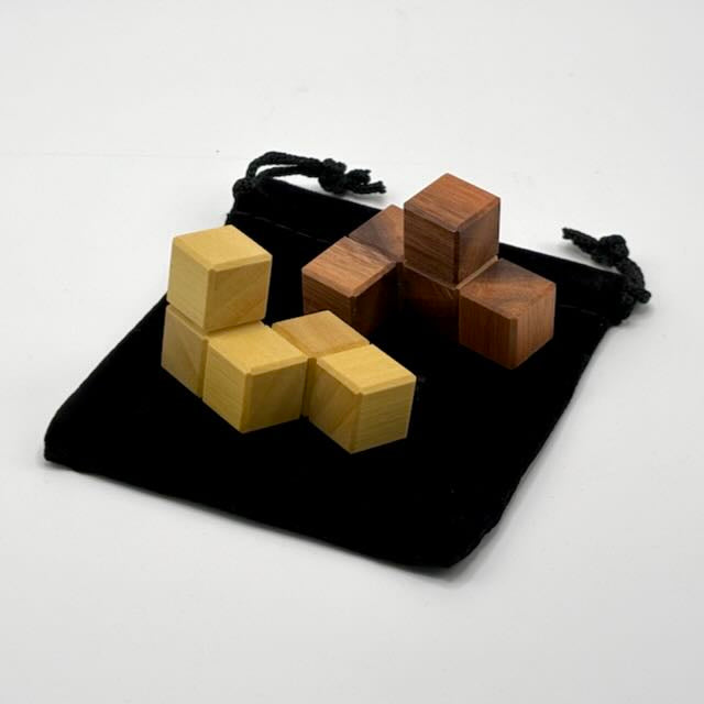 Each puzzle is made from different species of domestic and exotic hardwoods. Your puzzle may differ from the photo. All of these puzzles are small enough to fit in your pocket and make for a great diversion when needed!