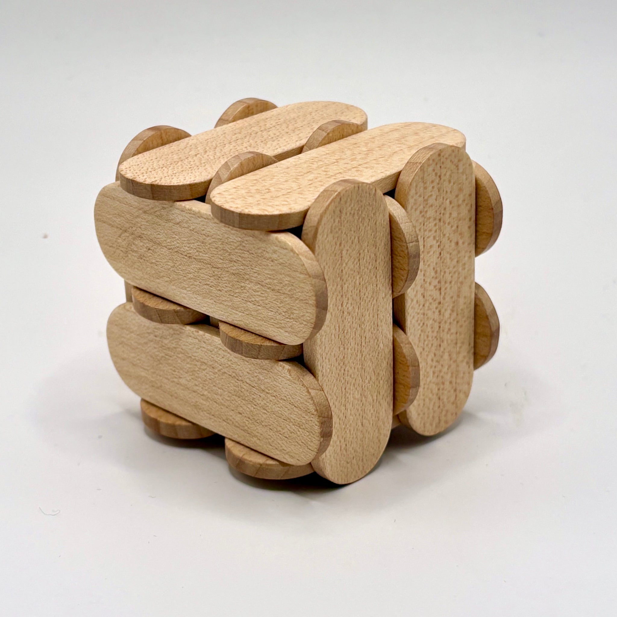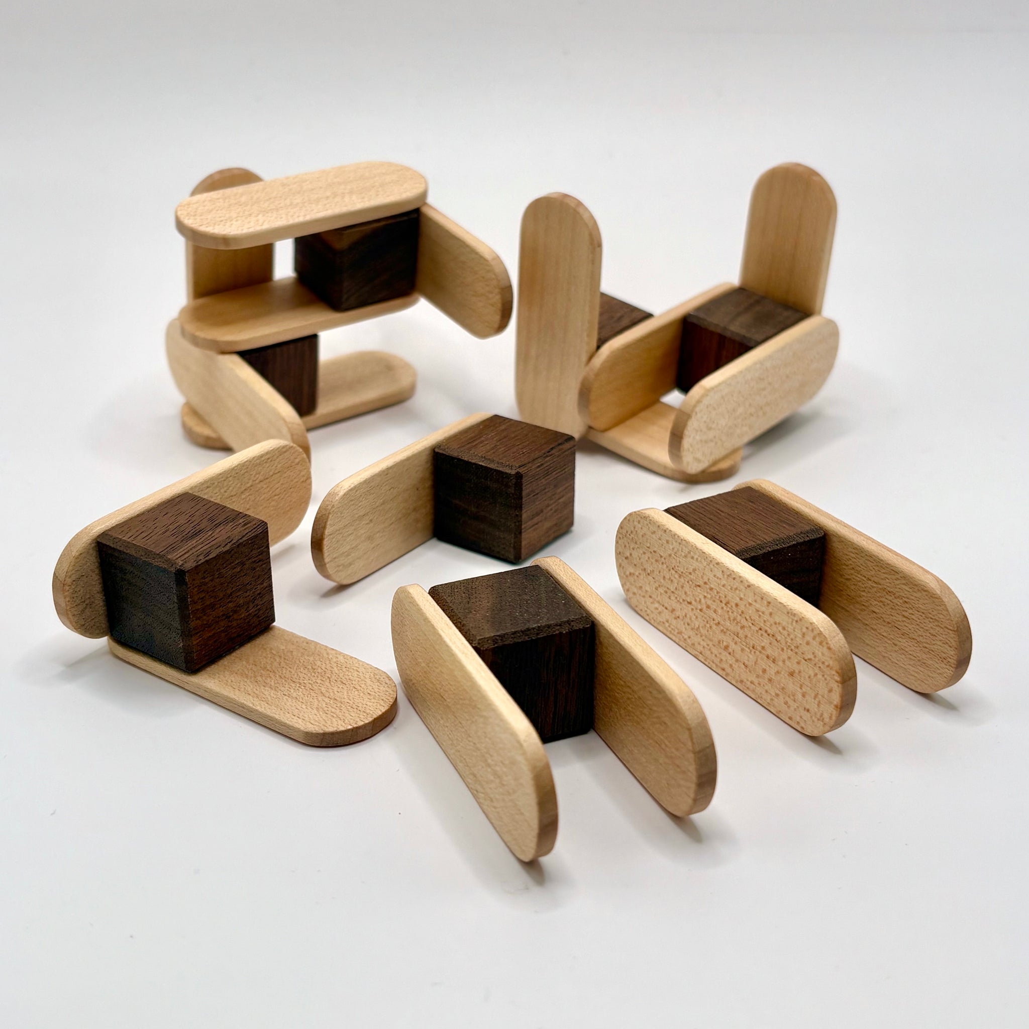 This clever little guy offers a rotation or two, so I decided to include it with this release. Can you assemble the six pieces into the shape shown? Getting started is definitely the most difficult part of the solution. You should give this one a go. Almost small enough to fit in you pocket. The tongue depressor pieces took quite a bit of time to make, but that was a choice I made since actual tongue depressors were not very suitable for a good quality puzzle. Hopefully more of these will be coming soon.