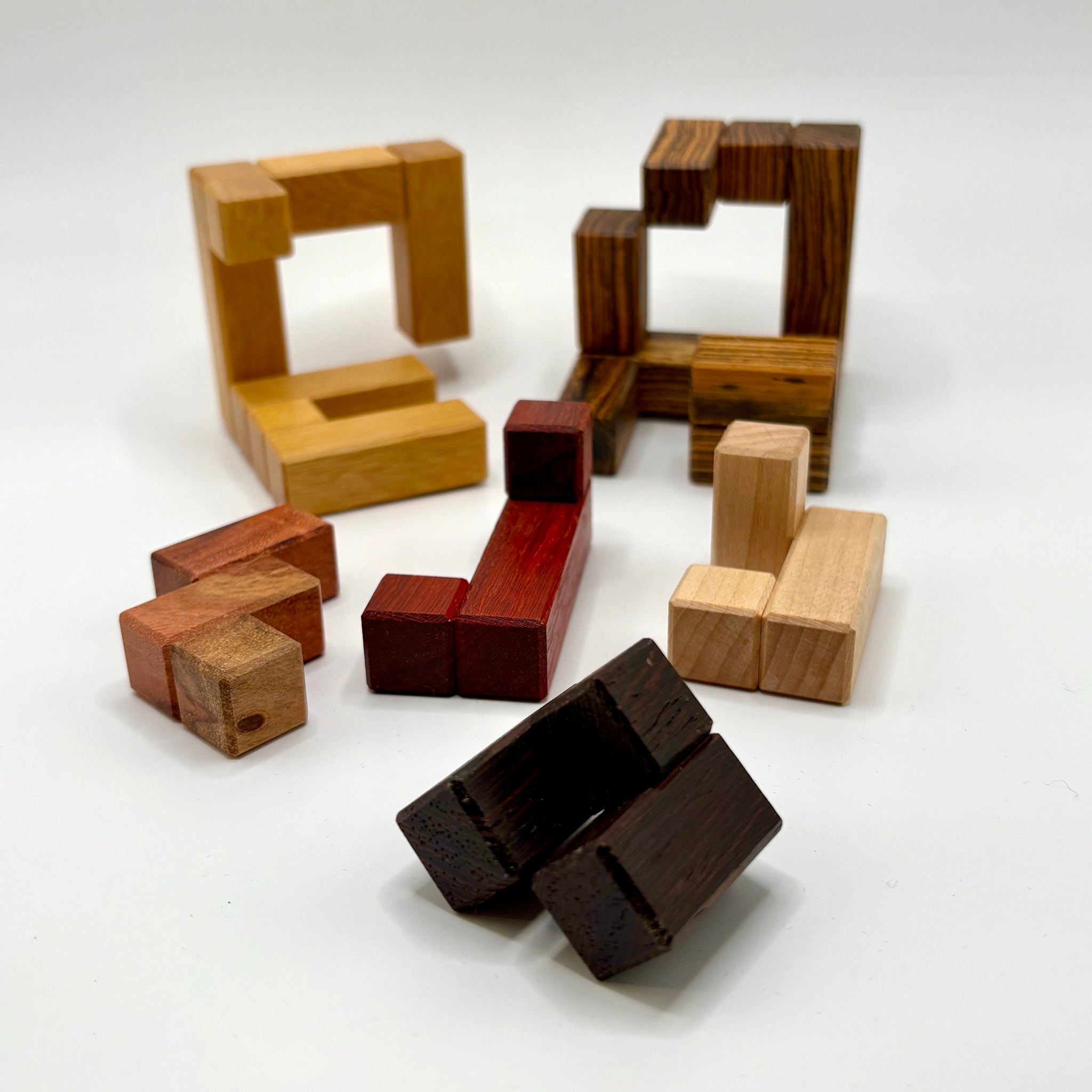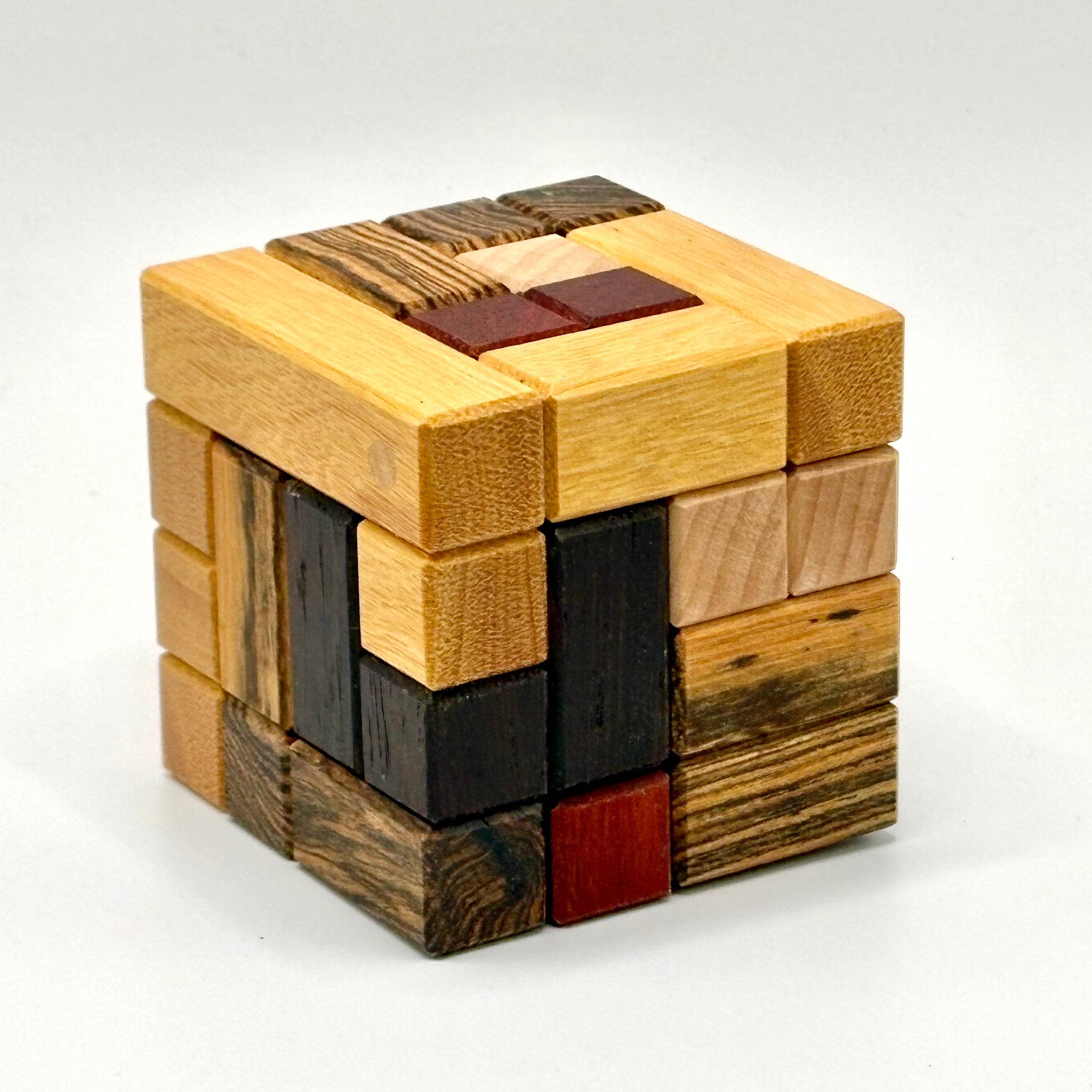 The most moves of the new TICs on offer today. LogisTIC's 6 pieces have 3 possible assemblies but only 1 will leave no gaps on the exterior of the cube. This is your objective! Each piece is made from a different wood species.