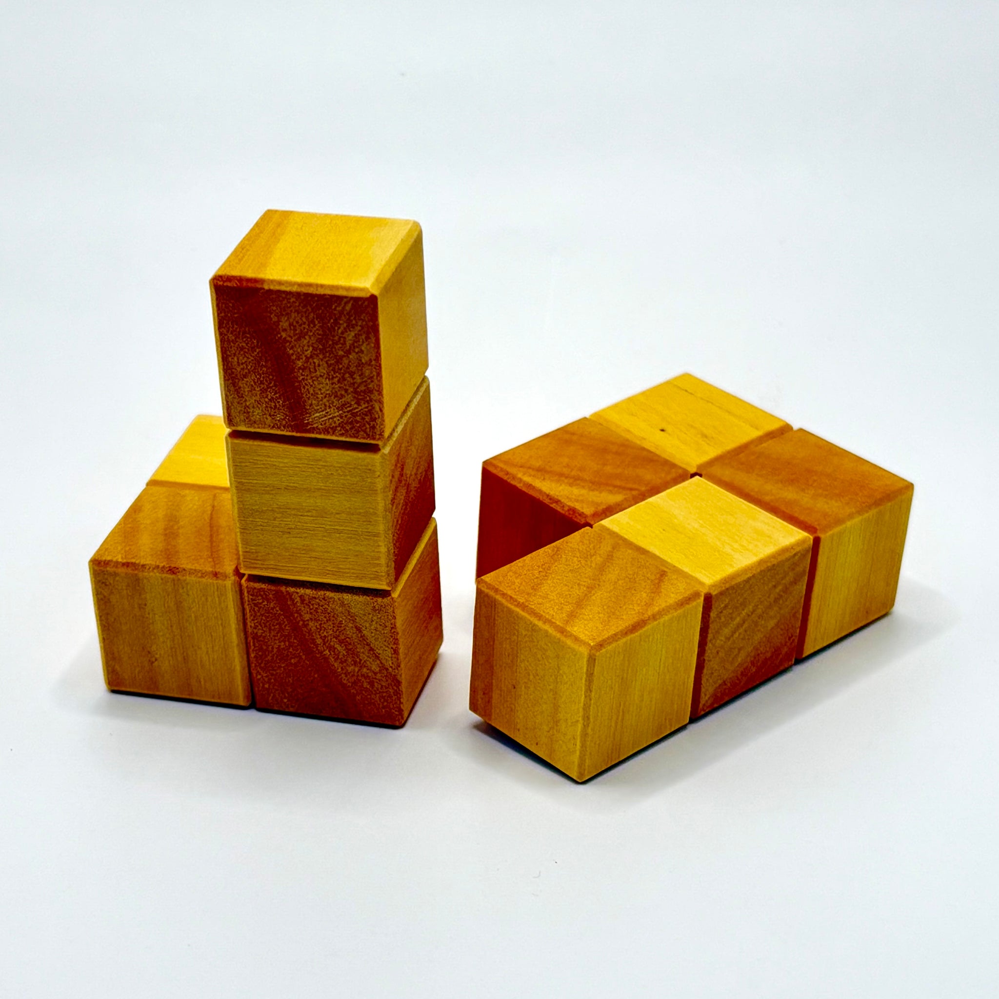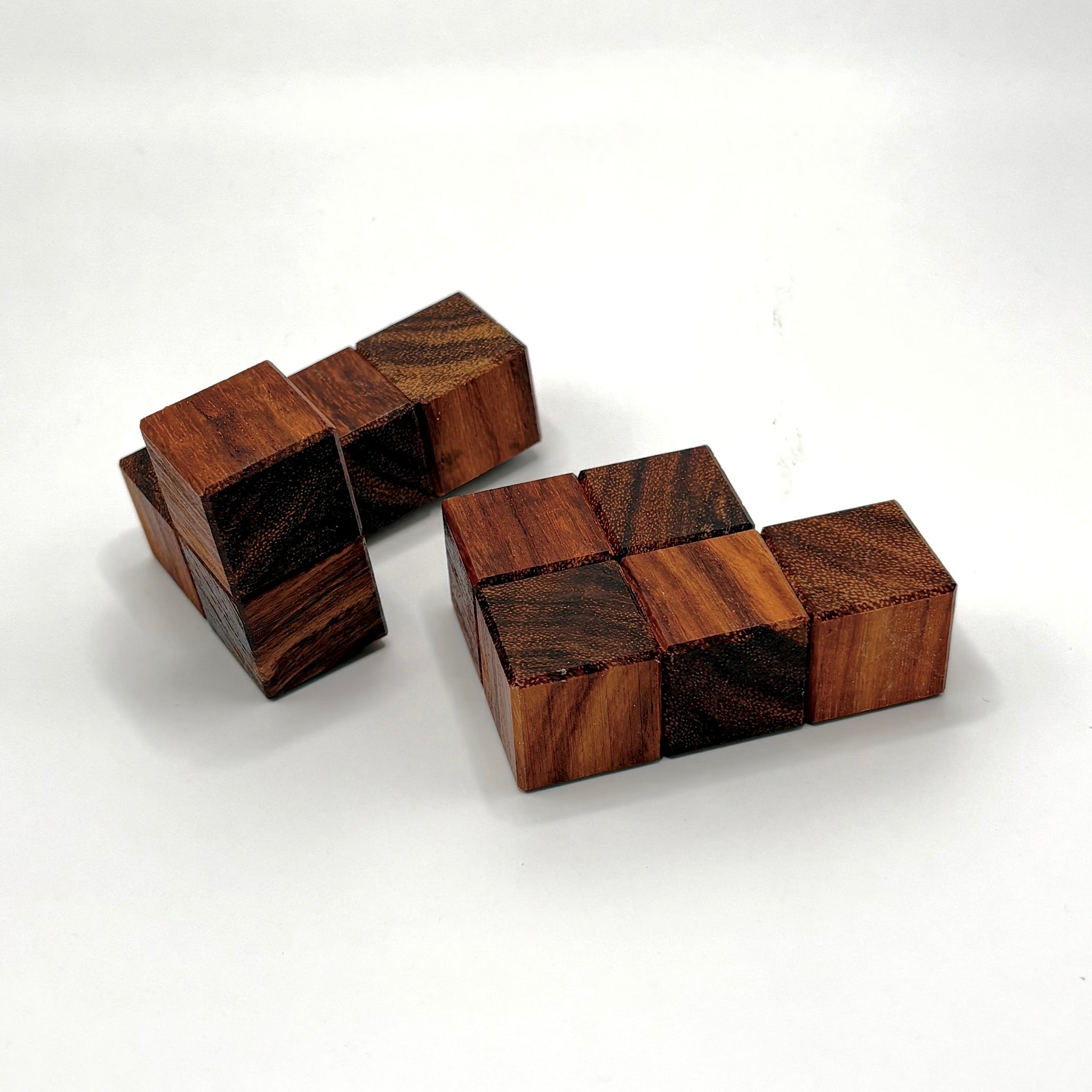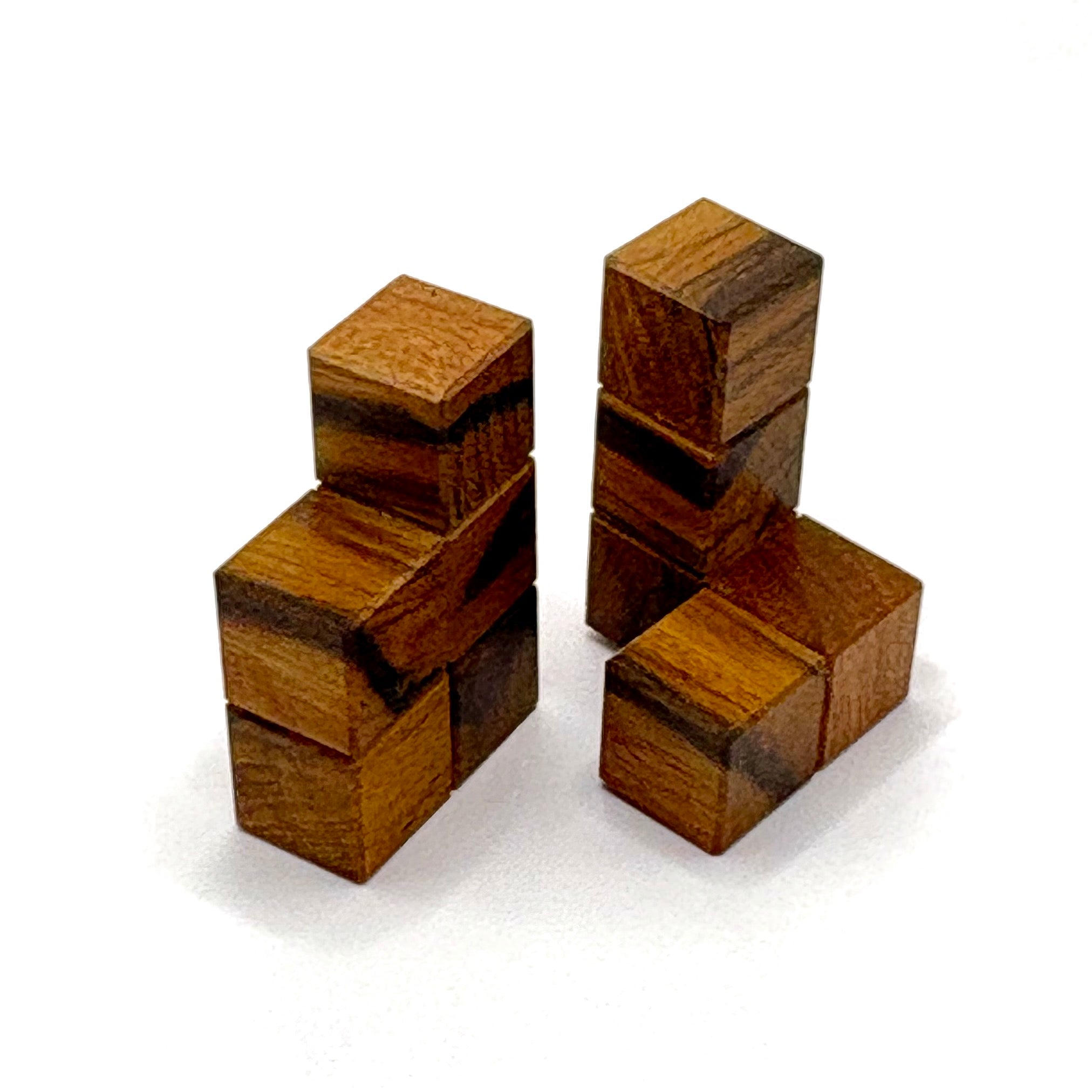 This is a cool puzzle. I still have not found all the options. The object is to find 6 mirror symmetry shapes and 3 rotational symmetry shapes from the 2 pieces. Not too difficult (I guess I shouldn't be saying that) but fun!