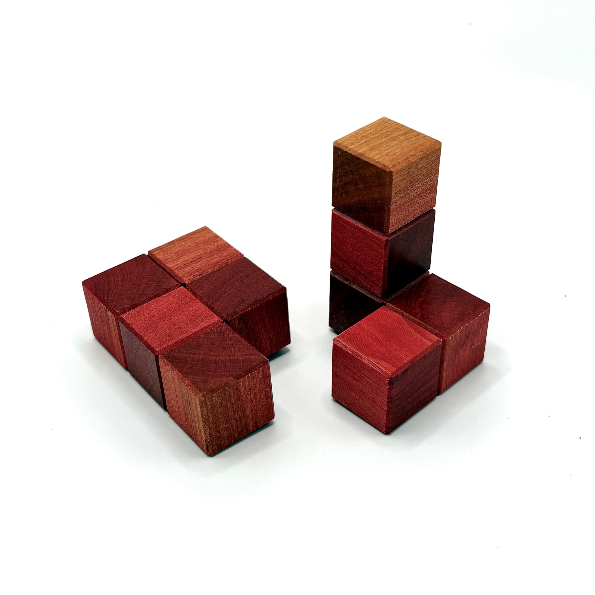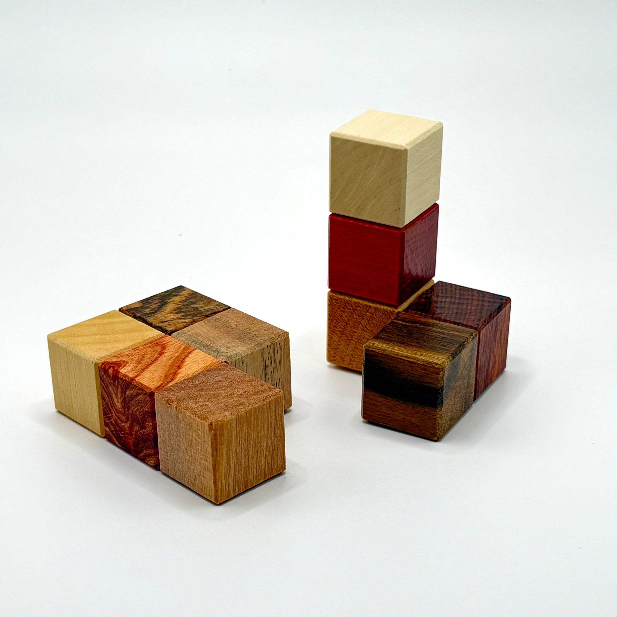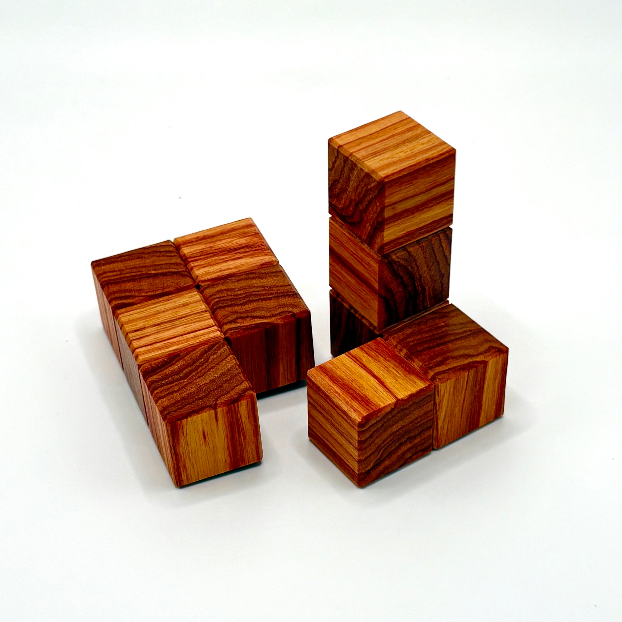 This is a cool puzzle. I still have not found all the options. The object is to find 6 mirror symmetry shapes and 3 rotational symmetry shapes from the 2 pieces. Not too difficult (I guess I shouldn't be saying that) but fun!